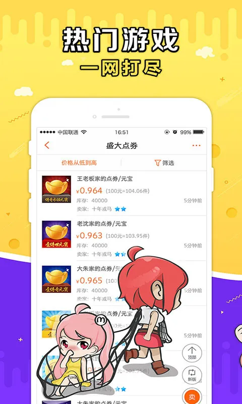 1. 提供安全可靠的交易服务,涵盖多种游戏账号、装备道具等交易,让玩家放心买卖。