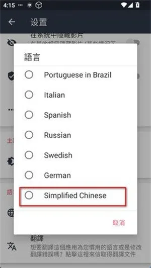 1、初次进入软件后,将会显示英文,需点击左上角的三条线,点击setting。