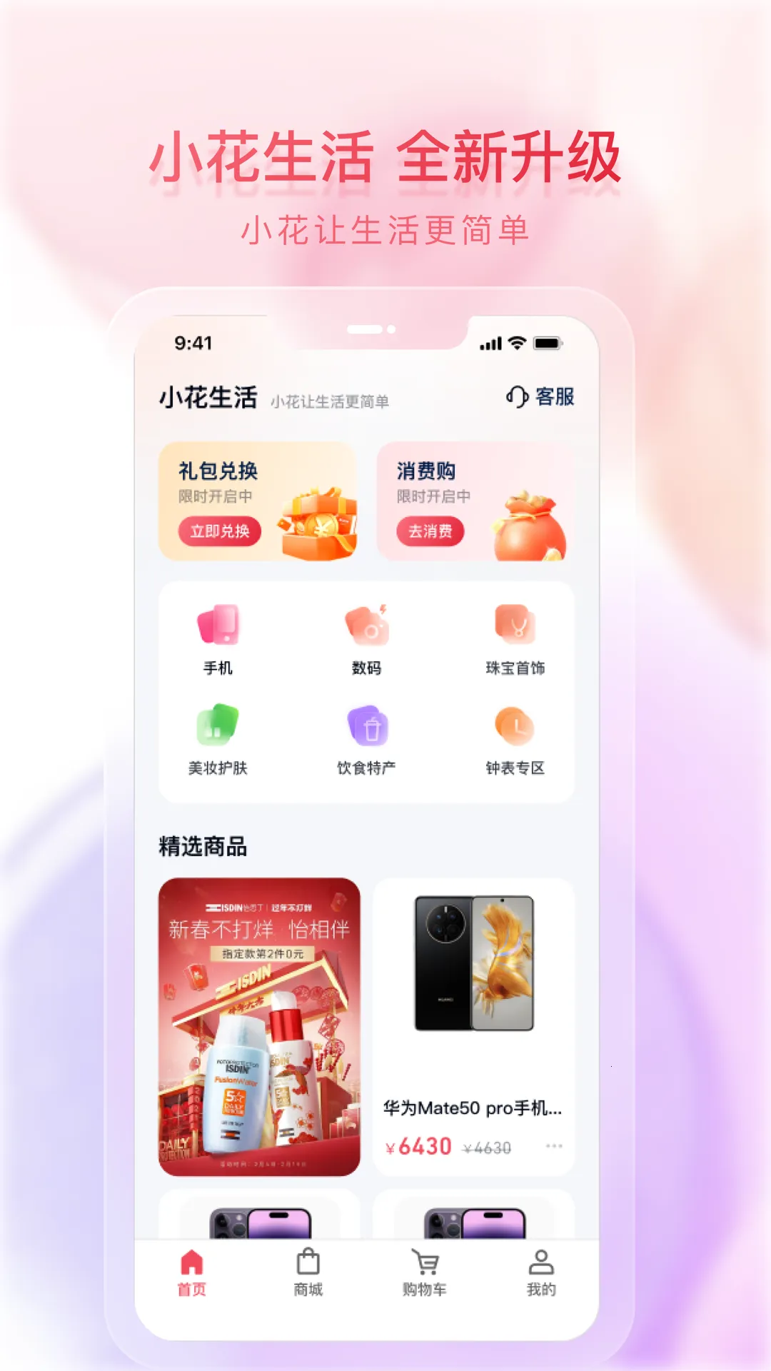 嘿,朋友们!小花生活改名啦,快跟我来了解下最新情况。它可是超实用的在线购物软件哦!这里商品超丰富,美妆、服饰、食品、电子设备啥都有,而且全是厂商直供,没假冒伪劣,质量超靠谱。经常有堪比双十一的优惠,还有超多优惠券能领,省钱超容易。发货和运送速度超快,不用久等就能收到心仪商品。它主要针对年轻人,购物体验丰富,还有社交互动功能,能分享购物体验和生活感受。支付信息加密保护,不用担心个人信息泄露。产品分类清晰,方便找所需。购物车支持多种付款方式,还有临近到期提醒。不管是日常购物,还是解决生活问题,它都超给力,能让你的生活更轻松便利,赶紧来体验吧!