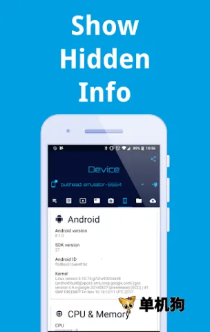 1、展示各种Android版本详细信息,包括SDK版本、Android ID等,还有Linux内核、CPU ABI及显示相关信息。