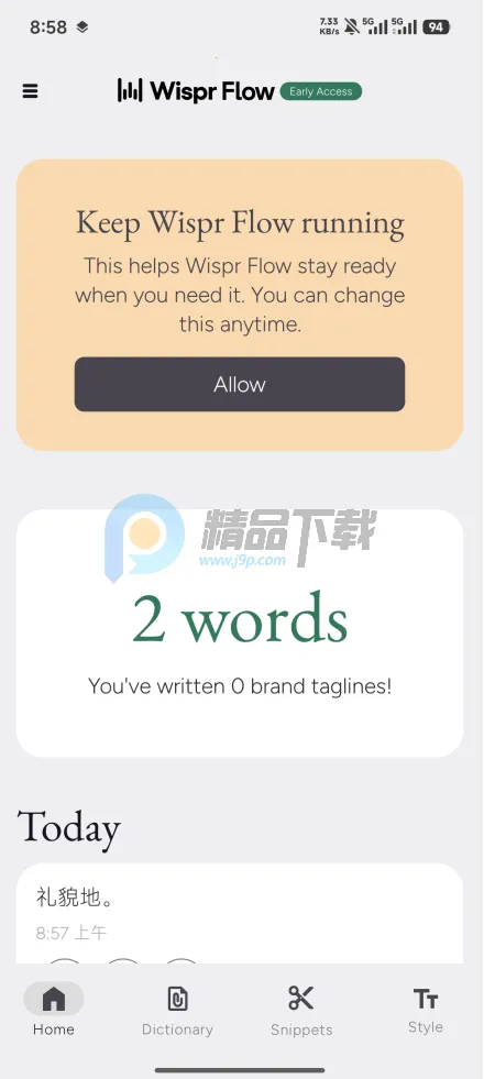 WisprFlow是一款面向安卓设备的AI语音听写App,依托高精度语音识别技术。主打零成本无限制使用,有全局悬浮按钮等交互方式,支持超100种语言,上线初期安卓用户可免费使用,能带来便捷高效的输入体验。