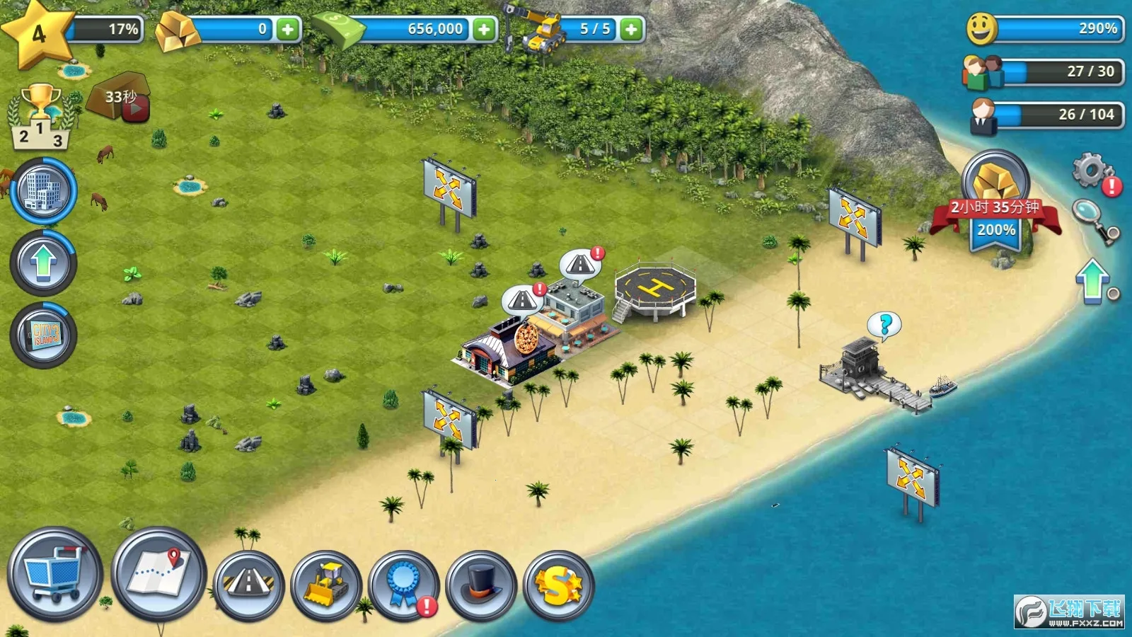 想知道城市岛屿3模拟城市怎么玩?这款游戏超有趣!操作简单,采用全屏触控,选建筑放合适位置就行。你将扮演城市建设者,规划街道、小区、商业区、市政服务等区域,还要考虑建筑联系。比如修居民房屋提供人口,配置好商业建筑与居民房屋数量,让居民自动打工,你收税累积财富。游戏有丰富建筑,居民房屋多样,商业涵盖面包房等,市政服务有警局、学校等。升级解锁不同岛屿,能建在旅游天堂、火山岛等地。注意建设公园、河道提升幸福指数,这关乎经验与奖励。还能放置步行小径等美化城市,市民会提任务和反馈。通过解锁岛屿,从村庄发展成大都市,享受建造乐趣,快来试试吧!
