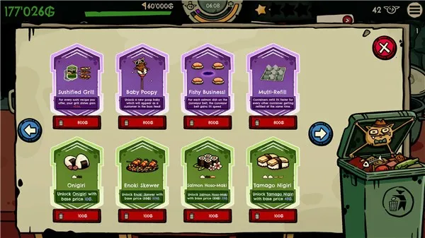 玩法上,下载安装好打开游戏,选存档开始。餐厅营业后,顾客进店,按他们要求做食物赚钱。右侧食谱能看到所需材料和升级卡,点击容器放食材到寿司垫上,屏幕下方显示寿司售价,会随食材和升级卡变。得在顾客耐心耗尽前做好,顾客吃完就付款。