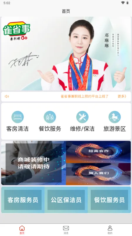 3. 服务多样:面向酒店景区等各类合作商户,提供客房清洁、宴会协助、设施维护等多种岗位的线上预约与派单服务,能满足不同用户的需求,为灵活就业人员打造了便捷的接单结算通道。