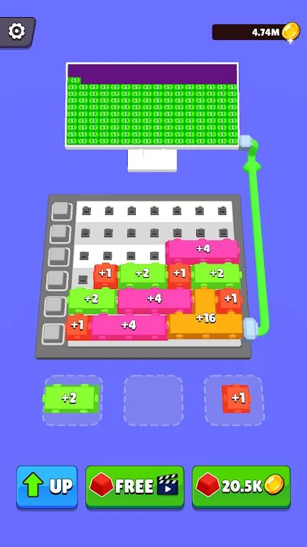 独特玩法体验:在这里,通过放置按钮并不断合并升级,开启独特赚钱之旅,每一次操作都充满乐趣与挑战。