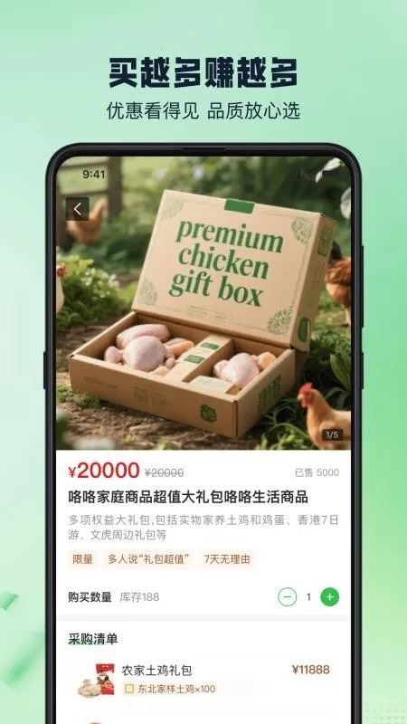 1. 商品多样且实惠:平台提供多种鸡蛋选择,还有生态鸡等商品资源,每件商品都有详细价格标注,更有定期推出的折扣满减等优惠,让您购物实惠。