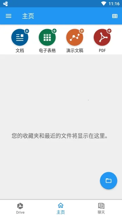 进入电子表格功能后,点击界面上的“+”符号按钮。
