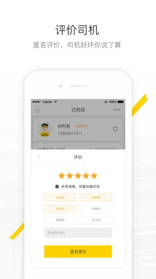 可匿名评价司机,服务好坏由你定,且不泄露用户资料。