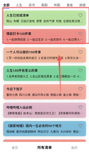 1. 拥有丰富多样的清单列表,涵盖学习、旅行、体验等分类,可作灵感参考。