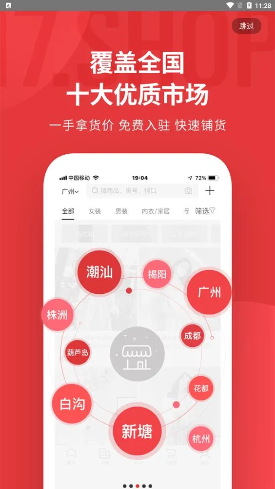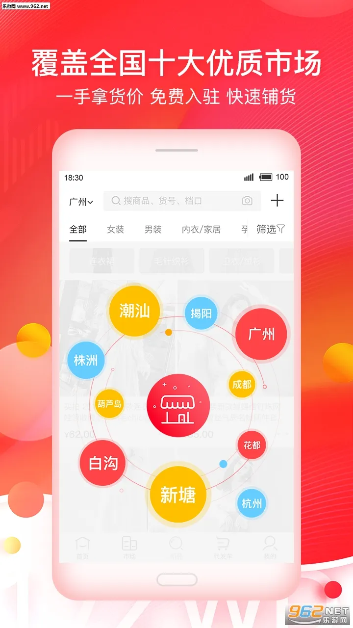 覆盖十大优质市场,一手拿货价,免费入驻,快速铺货。
