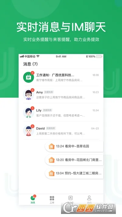 优居找房经纪人app是房产经纪人的得力助手。它能帮你快速找到附近房源,及时推送给客户,满足客户需求,增加业绩。资源共享和匹配功能,让房客源不错过任何成交机会。还能根据当地城市门店情况,自由配置所需能力。它覆盖200城市,是全国综合房产在线服务平台,一键同步58幸福里、房天下等流量平台,有超完善的分享工具、实时结算系统佣金和完善的权证售后体系。在这个app上,消息功能方便与客户沟通,通讯录便于查询客户信息,工作板块能查看租房数据、管理客户。更新日志还显示不断有新功能优化,像新增房源业主信息区域商圈保护规则全局设置、优化分享获客录客流程等。有了它,房产经纪人工作更高效,业务管理更轻松。
