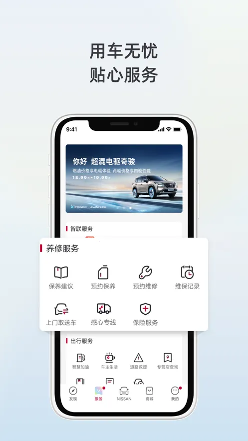 日产智联是东风日产乘用车公司为旗下互联网新能源汽车推出的车主服务软件。它能提供前所未有的智能化科技服务和个性化出行体验。车主可随时随地掌握车辆状况,享受优质车载娱乐服务。其功能丰富,涵盖违章查询、车辆位置及路线掌控、贴心导航等。还提供养车知识科普,帮助用户更好地使用汽车。因车型等不同,功能会有区别。总之,它为用户带来方便快捷的出行,是一款不错的汽车服务软件,能满足车主多方面需求,让用车更安心、便捷。