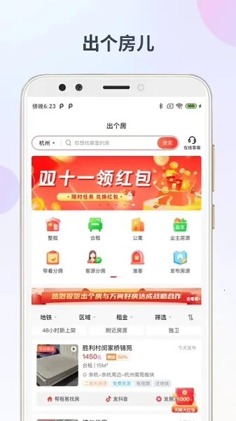 出个房app是上海偕聚开发的租房服务软件,有海量房源,涵盖各大城市多种类型。房东直发可直联,佣金低至35起,平台担保。支持用户与房东在线沟通,还能发布信息,操作便捷,满足租房等需求。