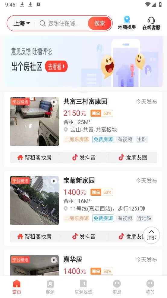 2. 房东直发房源,可直接联系房东本人,佣金当面结算,且平台免费开放,无需担心真假问题。