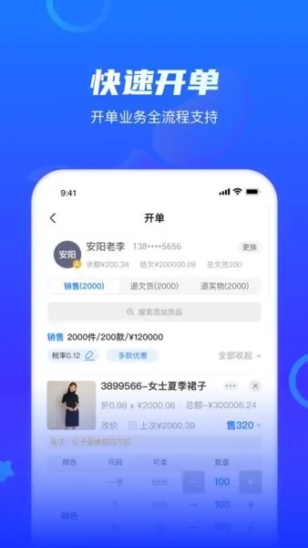 高效开单发货:可随时随地快速开单,随时补单,不再漏单,支持多种维度快捷发货,发货便捷高效。