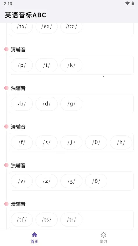 3. 分类排列:能在线分类查看音标,便捷高效。