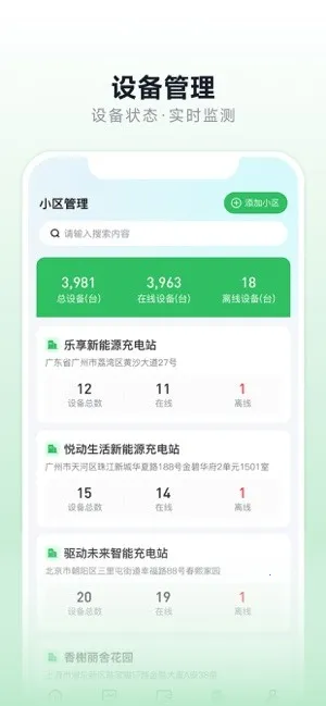 1. 全国充电网络覆盖范围广,接入超5万个充电桩,涵盖多种场景,支持一键管理分散设备。
