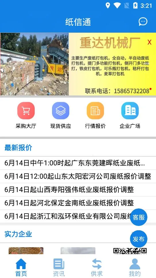 它具有即时报价、全面货源、简便沟通、贴心服务等特色。无论您是从业者还是普通用户,只需轻触屏幕,便能开启便捷的废纸交易之旅。它不仅提供实时的废纸报价,还让用户能够便捷地查找和比较不同供应商的价格,从而做出明智的决策。