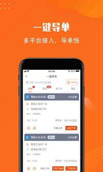 1. 聚合配送一键呼叫,八方响应,开启全新配送服务体验。