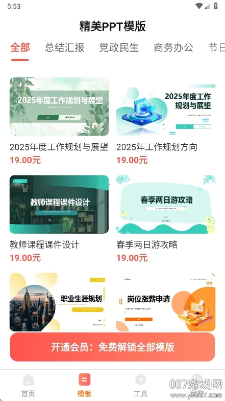 3. 海量模板:内涵海量PPT模板,覆盖商务、教育、科技等场景,输入主题或上传文档就能一键生成专业演示文稿。