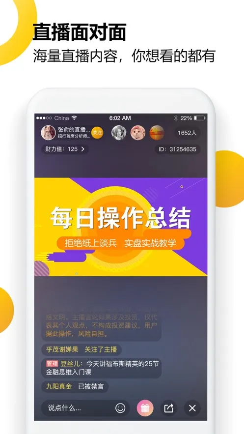 在财乎,你能快速阅读资讯热点,通过小视频了解精彩财经信息,还能在课堂学习提升能力。直播功能支持即时直播、预约直播及回放,让你不错过任何重要内容。你可以关注名家,与他们实时沟通,学到更多财经商业知识。在线咨询问答能帮你快速解决问题,获得更多帮助。