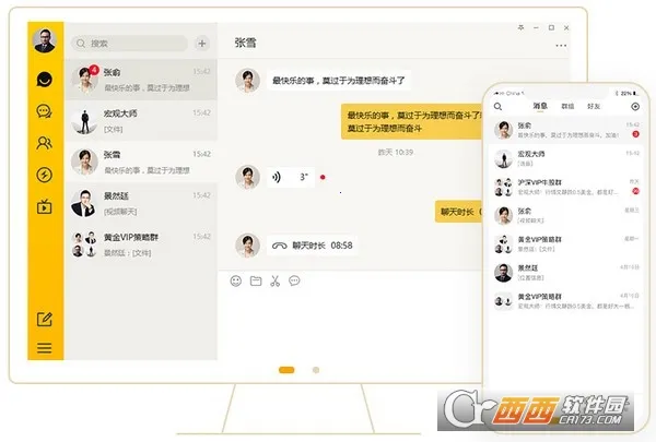 2. 沟通便捷:无论何时何地,可在各类终端与好友自由沟通,已支持Windows电脑、苹果手机、安卓手机。
