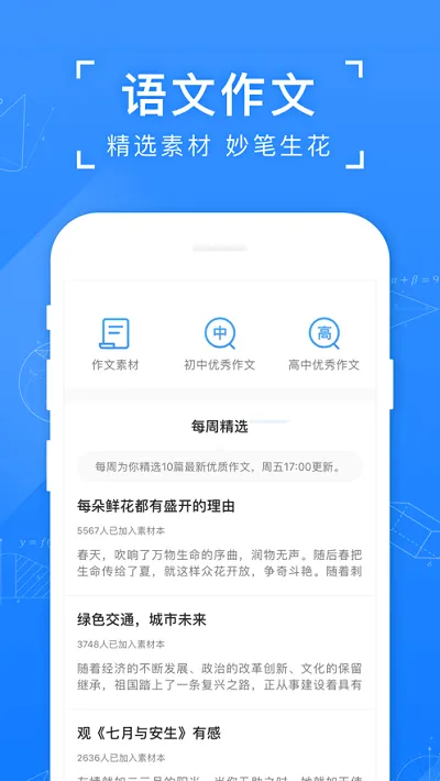 1. 提供语文和英文作文优质素材库,支持智能批改与写作思路引导,助力写作提升。