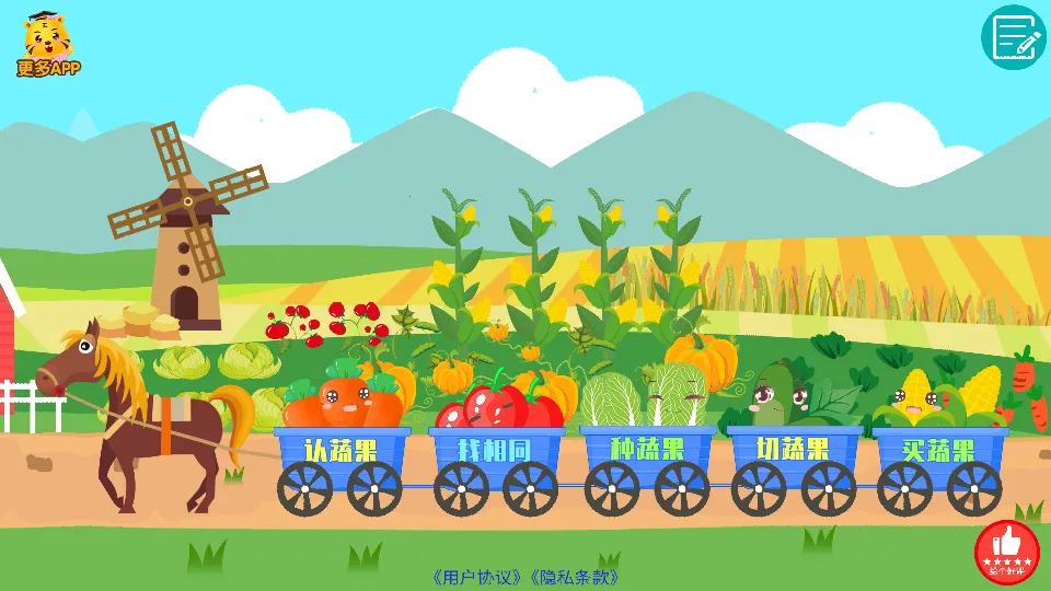 儿童认蔬菜2026官方正版是一款早教益智游戏,画面卡通可爱。通过多种场景、配音及趣味互动,助孩子认识常见蔬菜,含种蔬果、认蔬果等模块,以寓教于乐方式让孩子快乐学菜。