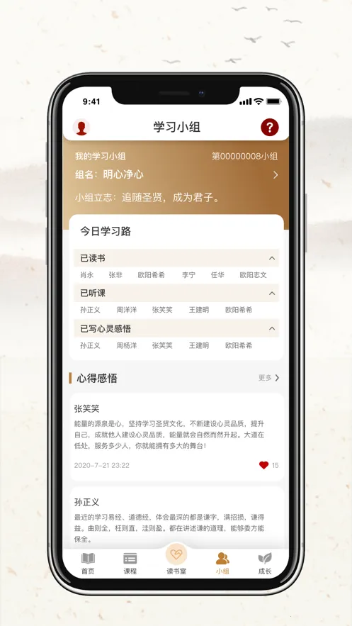 3、通过碎片化学习降低门槛,每日更新课程和学习小组帮助保持热情、坚持学习,从心出发关注成长本质,激发潜能修复关系,达成全方位成长。