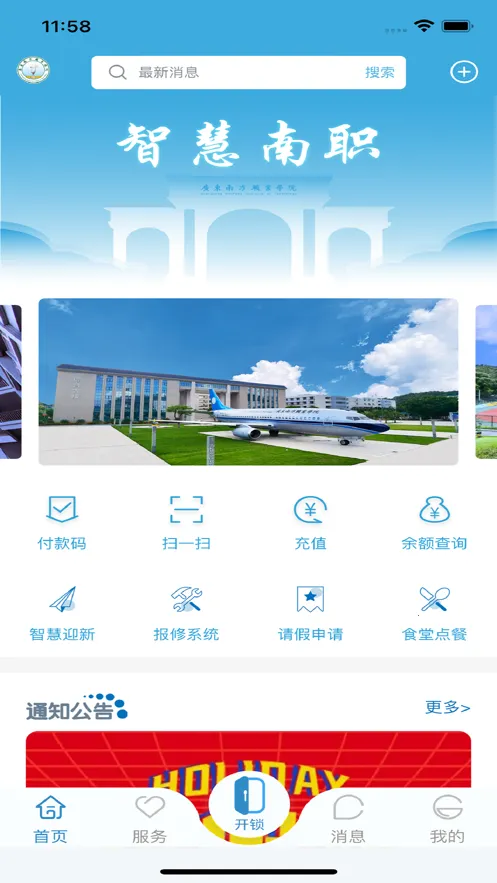 3. 提供多种智能生活服务,如开锁、点餐、请假、报修等,操作快速便捷,让校园生活更方便。