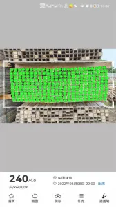 猛秦数钢管软件超实用!它是建筑行业综合性app,新版本的数钢管功能超受欢迎。只要用手机拍照,就能一秒全自动识别钢管、钢筋、方木等几十种物资的数量。软件特色满满,能让你随时随地了解配送信息,合理安排收货;了解商品动态,抓住最佳采购机会;随时购买喜爱产品,享受专业咨询服务;还能随时随地退换货,没后顾之忧。使用时,进入首页点相应模板,初次使用允许权限申请,拍照后等片刻就能看到计数效果,有遗漏可手动调整。而且它不收费,支持转发朋友圈免费获使用次数,每次转发当天可免费使用。这软件功能强大又便捷,能大大提高建筑相关工作的效率,不管是建筑材料计数还是采购等,都能轻松搞定,强烈推荐下载!