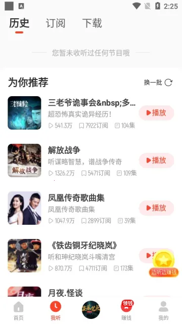 懒人极速版现在改版成了一款能全网听书赚红包的app。在这里,用户可以自由听书,还有很多相声电台也能收听,边听边赚取多多红包。用户还能在app中自由配音,更换不同人声,享受书中精彩剧情。它的功能十分丰富,解决了用户想听书却懒得看书的问题,用听的方式轻松获取知识。便利性更是没得说,海量优质有声阅读资源免费听,新用户注册还送红包能快速提现。它有着多种类型小说,评书相声也全程免费。完成各种任务就能赚取金币兑换现金,比如邀请好友、完成新手任务、日常任务以及每日福利等。提现金额多样,有0.3元、5元、10元等可选。总之,改版后的懒人极速版为用户带来了便捷又有趣的听书体验。