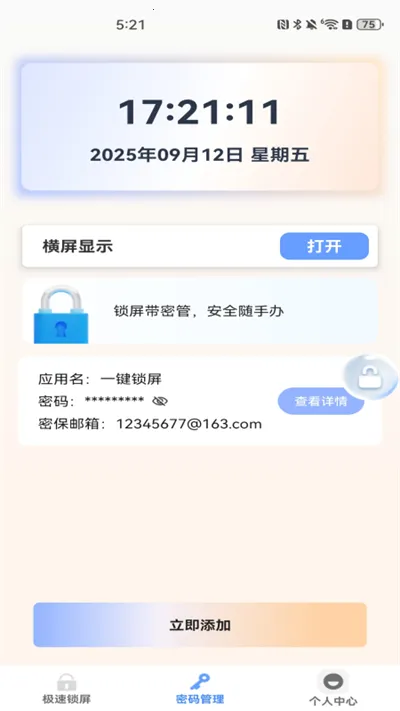 一键锁屏快锁软件是安卓设备的锁屏实用工具。它能解决物理电源键因频繁按压易损坏的问题。通过获取设备管理员权限,轻触桌面或任务栏图标就能快速锁屏,响应速度超快,和按电源键效果一样,还能延长按键使用寿命。它无后台驻留,不占内存、CPU资源和电量。支持将锁屏图标添加到桌面、任务栏、通知栏等,可按习惯自定义触发位置,适配各种桌面布局。广泛兼容安卓系统,部分厂商还将一键锁屏集成到系统快捷开关,无需安装第三方应用就能在通知栏直接用,使用起来非常便捷。