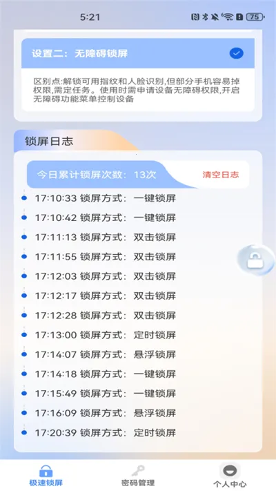 2. 操作便捷高效:轻触图标即可快速锁屏,满足高频解锁场景需求。