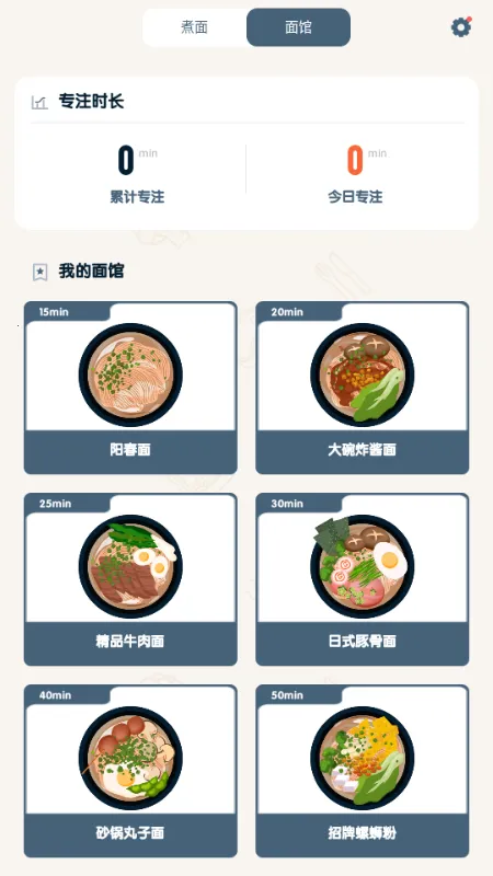 2. 实现自律目标:可挑战自己,通过煮面设定专注时间,完成目标,达成成就,积累专注成果。