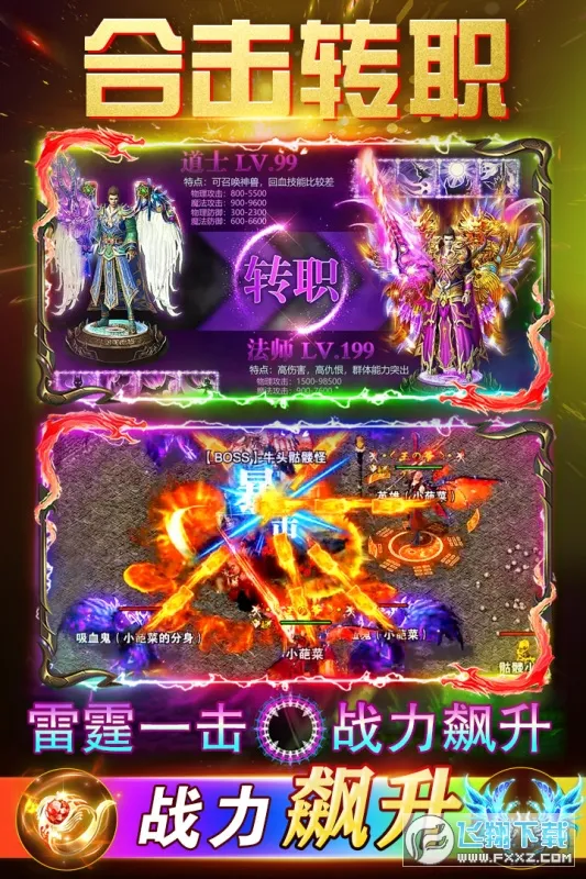 1. 复刻经典三职业平衡体系,战士、法师、道士各具特色,多样技能组合带来丰富战术体验。