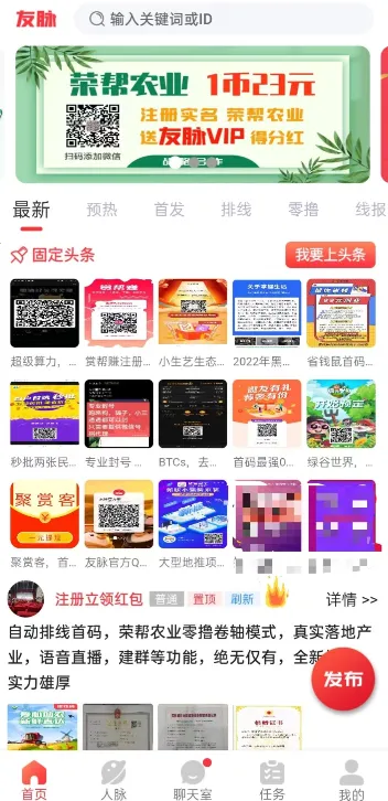 友脉安卓版是专为电商打造的管理服务平台,能推广商户、搞定人脉。任务丰富,玩法简单,可足不出户完成任务、赚金币。还能帮商户引流提效,适合学生党和自由职业人赚取零花钱。