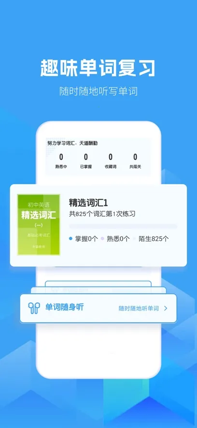 初中英语学习软件是一款功能强大的学习工具。它涵盖同步教材、智能题库等丰富功能,与教材和中考大纲同步,适配各版本。有海量课程、真题试卷,能高效复习提成绩。提供大量学习资源,专业教师在线辅导。具趣味闯关模式,可激发学习兴趣。智能工具辅助,科学分类模块提升效率。应用界面升级,资料专区新增,习题优化。无论是预习、复习还是日常学习,都能满足需求,助力轻松学好初中英语,是提升英语水平的得力助手。