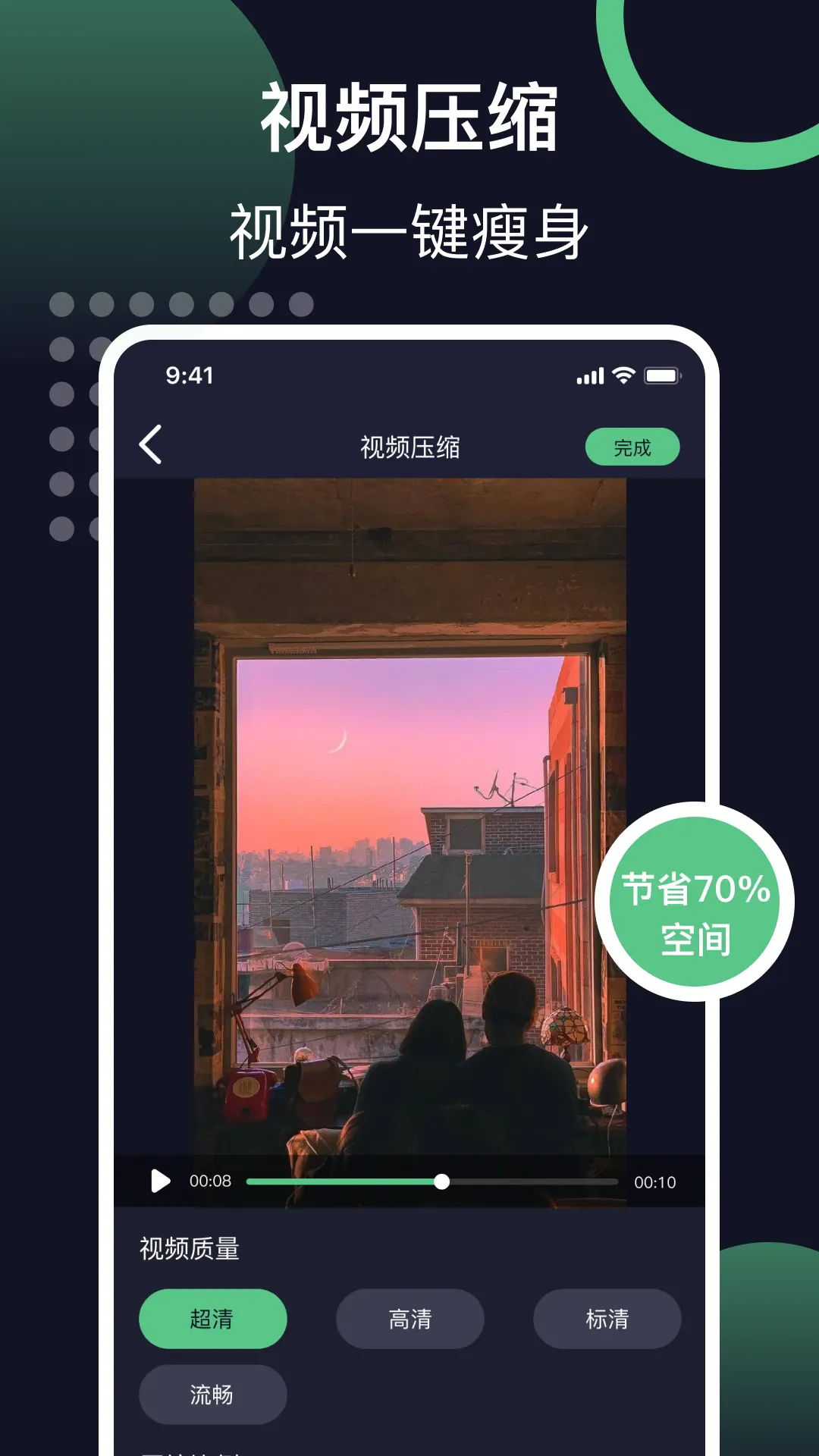 1. 可自由开启视频压缩,有效节省手机空间。