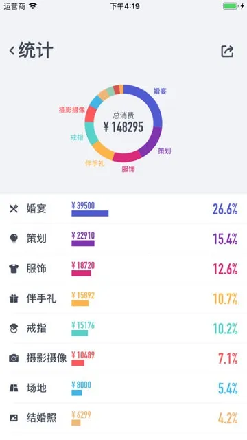 2. 分类清晰,各类消费细致划分,查看一目了然。