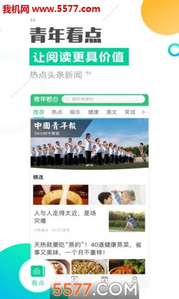 青年看点app是灵活便捷的资讯平台,能随时获取多领域新闻热点,凭大数据精准推荐。用户浏览可赚现金,邀好友、分享内容也能得红包。有精彩视频、海量资讯等功能,下载有新人奖励,每日红包雨等福利。
