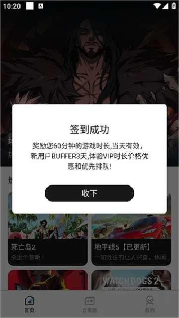 大神云电脑是一款云游戏平台,通过云技术让用户在手机等设备上畅玩大型3A游戏与网游。无需高配硬件、免下载安装,提供高清低延迟服务,有海量游戏库存,还有每日红包领时长等福利。