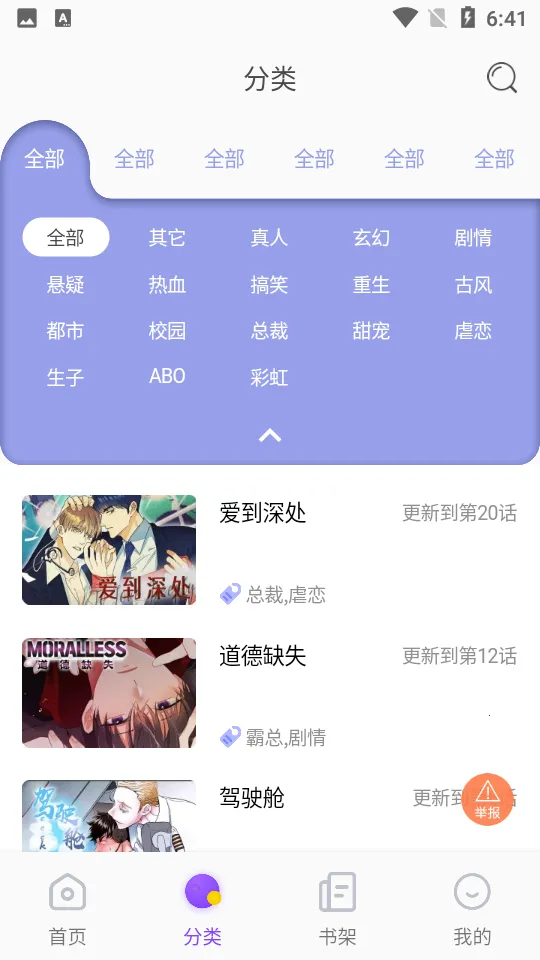 1. 界面干净易操作,能随时体验丰富漫画,每个漫画还有众多标签,便于精准选择。