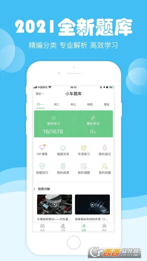 功能丰富易学习,有顺序练习、专项突破、学时记录等功能。顺序练习即时显示解析助理解;专项突破针对错题强化;观看视频教程累计学时,达到规定方可预约考试。