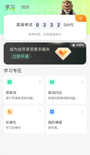 土拨鼠备考2026最新版本是杭州九官鸟科技有限公司打造的考研英语备考软件。整合智能背单词、长难句拆解、真题精练功能,精准对接三大核心备考模块,适配全阶段需求,科学高效助考生攻克英语难关。