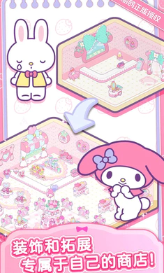 3. 与可爱的三丽鸥伙伴携手,共同建造专属购物城。