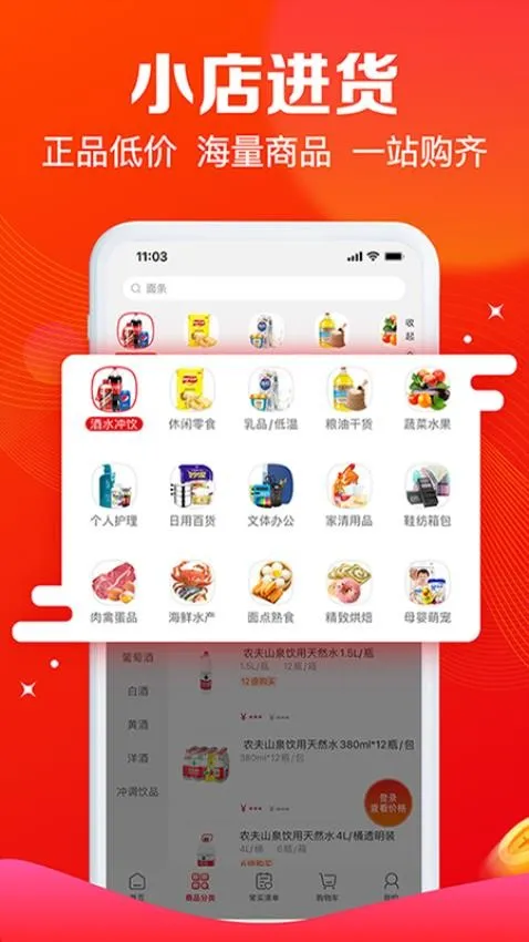 商品丰富:经营品类涵盖酒水饮料、米面粮油、母婴用品等众多分类,拥有12000多个SKU,满足多样采购需求。