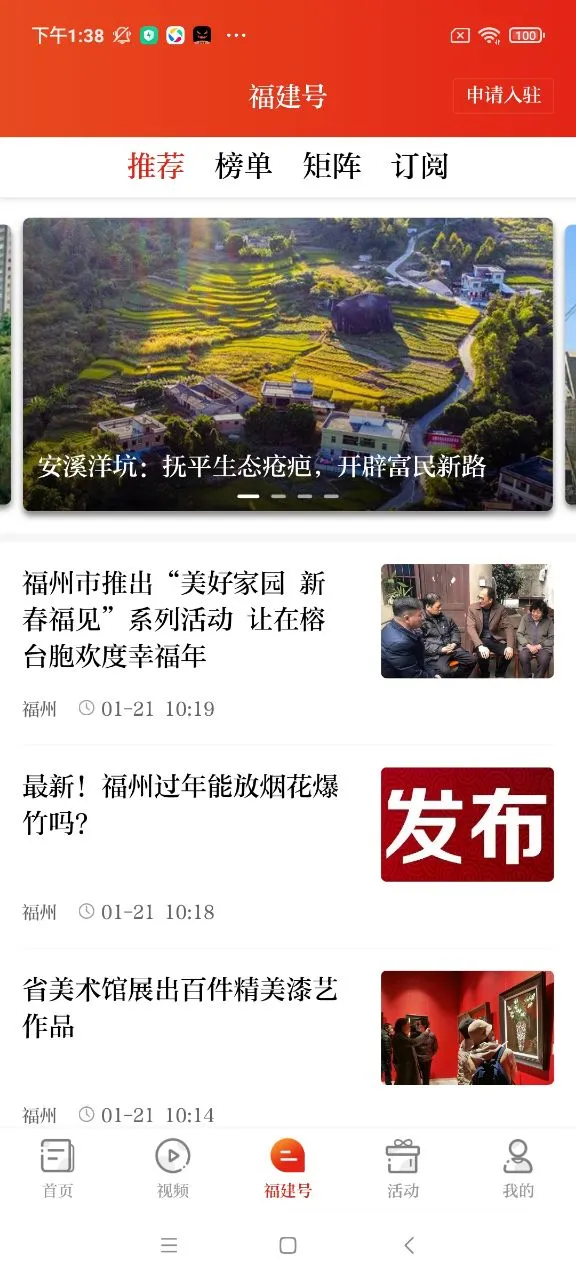 新福建安卓版是福建权威全媒体聚合发布平台,如移动端福建日报。24小时更新新闻,涵盖民生时事等。有福建号、直播、影像等特色板块,能报料、参加活动,还可一站式订制信息、享受生活服务。