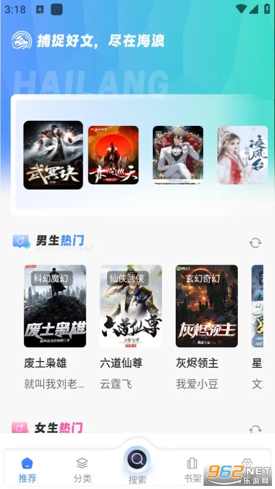海浪书屋是一款超棒的小说阅读平台,专为小说爱好者打造。它汇聚海量热门小说,不管你喜欢玄幻、都市还是言情等类型,都能满足。这里所有小说免费无广告,能在线阅读也能离线下载,随时随地享受阅读乐趣。它每天会根据你的阅读习惯推送精彩推荐,帮你找到心仪好书。软件自带多条书源,打不开时可灵活切换,确保阅读流畅。排行榜实时更新,让你告别书荒。还有贴心的音量键翻页功能,进入阅读界面,在设置里开启就能用音量键翻页啦。它界面简洁,操作方便,有多种个性化设置,能调整字体大小、翻页模式等,打造专属阅读体验。总之,海浪书屋能很好地满足你追书的各种需求,让你尽情沉浸在小说世界中。