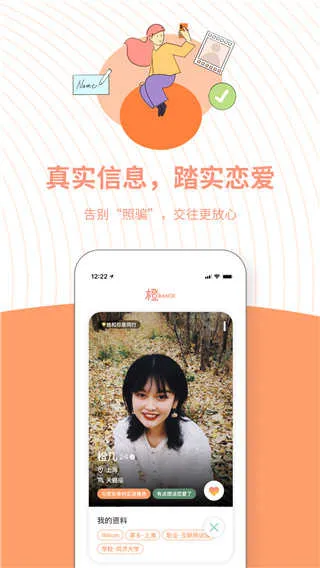 橙社交 2026 官方正版是专为 00 后及年轻群体打造的真实系交友 App。需真实资料验证,以兴趣导向推荐,有三日聊天机制。杜绝照骗,过滤无效社交,帮用户筛出值得对话的人,让网恋奔现更可能。